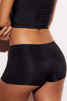 This boyshort offers full coverage, high comfort and lays seamlessly under your clothes. The leg holes have raw edges for the most invisible seams.